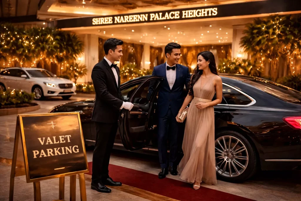 Enjoy seamless arrival with our professional valet service. Secure, efficient, and hassle-free parking ensures your experience at Shree Narenn Palace Heights begins in comfort and style.