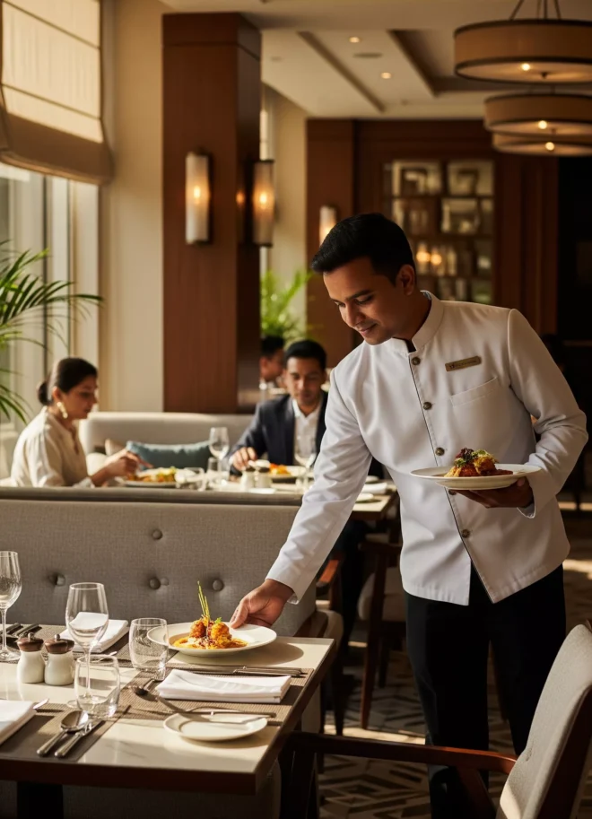 Step into a space defined by understated elegance and contemporary design. Soft lighting, refined interiors, and versatile seating arrangements create a setting suited for every occasion—whether it’s an intimate meal, a family gathering, or a professional meeting. The atmosphere reflects the calm sophistication that defines Hotel Narenn Palace Heights.